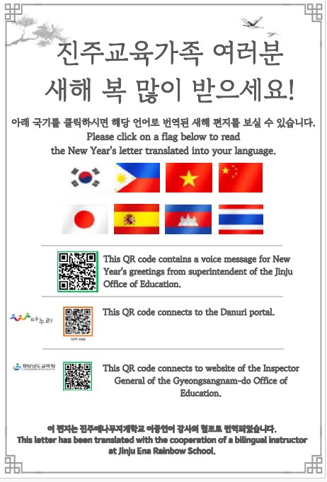 엄마나라말로 전하는 교육장의 청렴 새해 인사 편지
