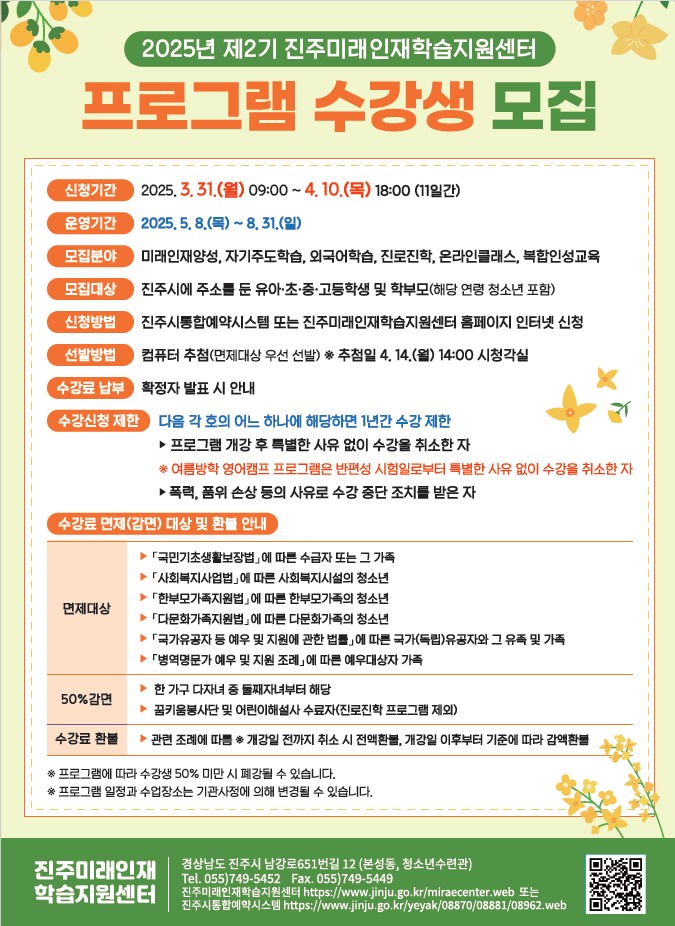 진주미래인재센터 2025년 제2기 프로그램 수강생 모집 안내