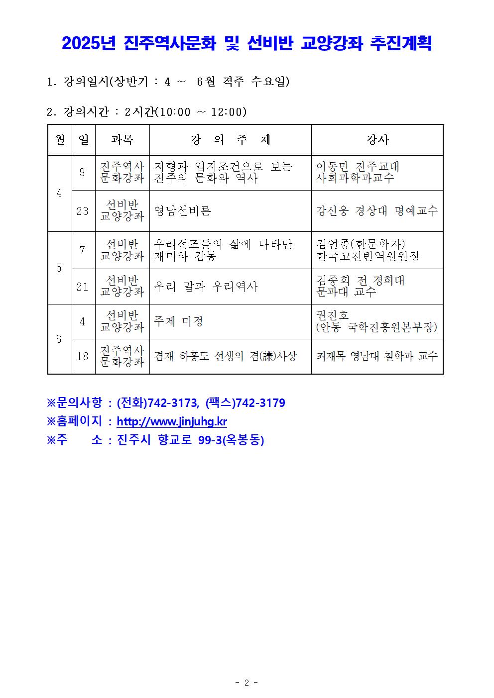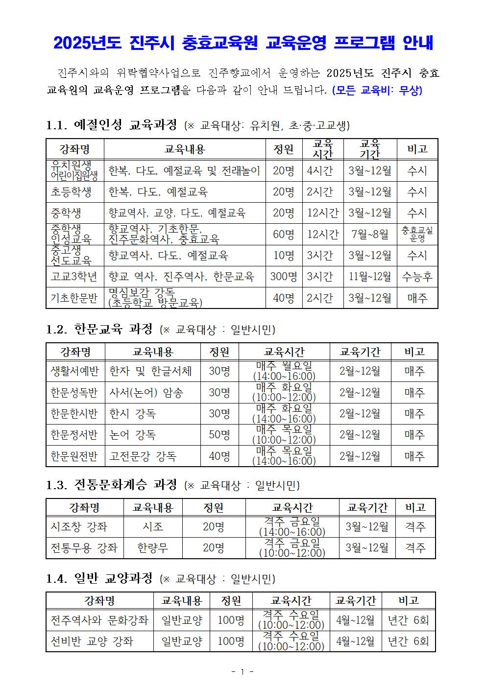 진주시 충효교육원 교육 운영 프로그램 안내