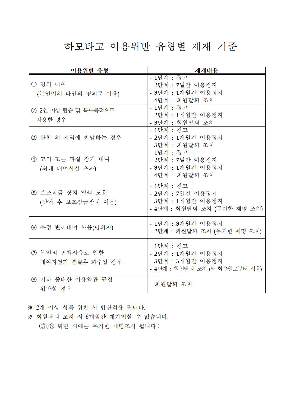 무인대여 공영자전거 '하모타고' 15세 미만 이용제한 안내