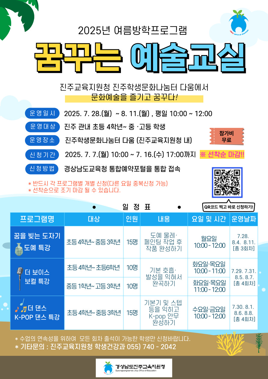 진주교육지원청 진주학생문화나눔터 다움 여름방학프로그램 참가자 모집