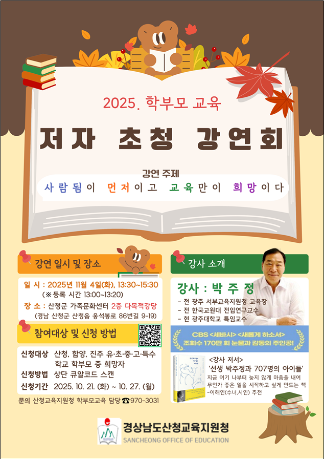2025. 산청 학부모교육 저자 초청 강연회 홍보 안내