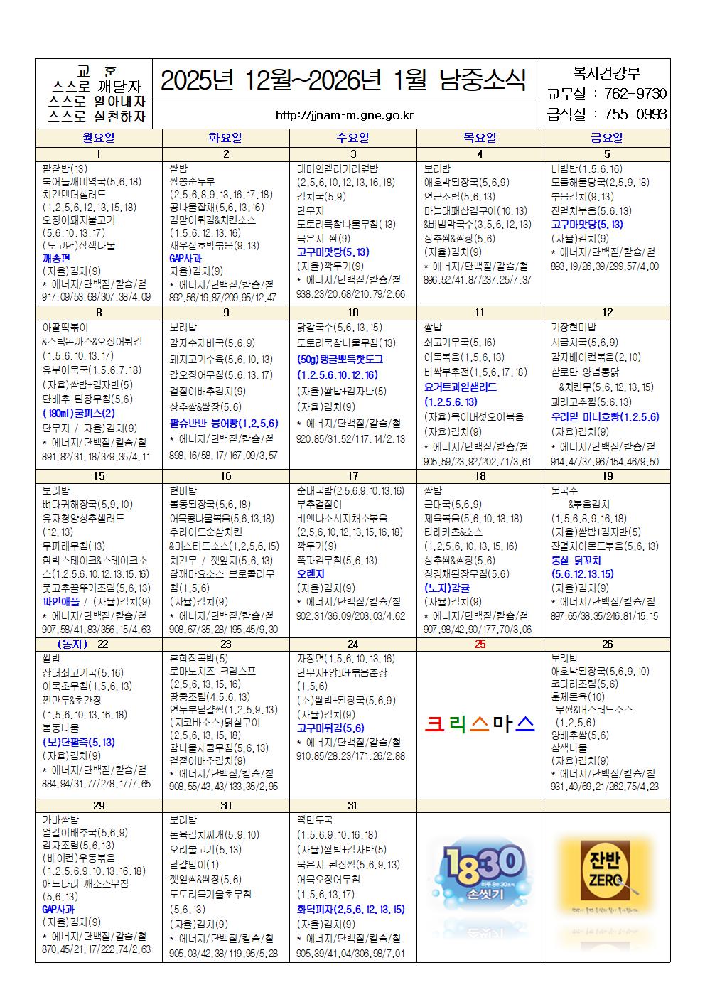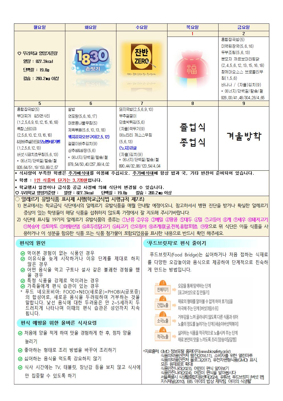 [가정통신문]2025년 12월~2026년 1월 식단표 및 영양소식지